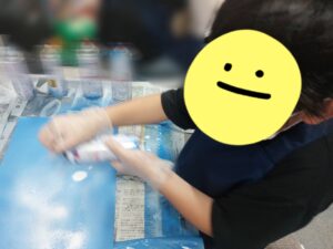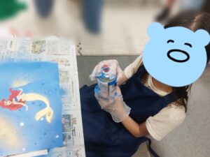 初めてのスプレー体験で「楽しい!」や「出る瞬間少しびっくりした!」などと感想を話しながら楽しみました😊