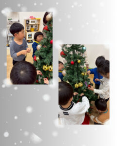 飾りが増えるたびにどんどん豪華になっていくツリーを見て子どもたちの表情も自然と笑顔に💭